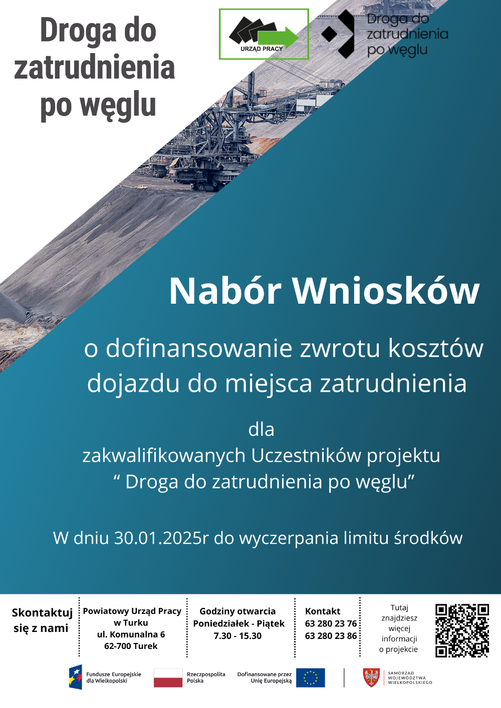 W razie pytań zachęcamy do kontaktu tel.: 63 280 23 76, 63 280 23 86, lub w siedzibie Powiatowego Urzędu Pracy w Turku ul. Komunalna 6, 62 -700 Turek, pokój nr 7 lub nr 14.